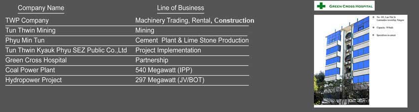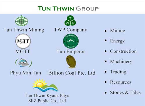 Tun Thwin Group Concerns Mainly With The Mining And Industrial Sector. The Activity Of Tun Thwin Group Concentrates Upon The Follwing:-